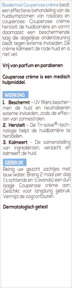 Biodermal Couperose crème is een medisch hulpmiddel. Lees voor gebruik de gebruiksaanwijzing.