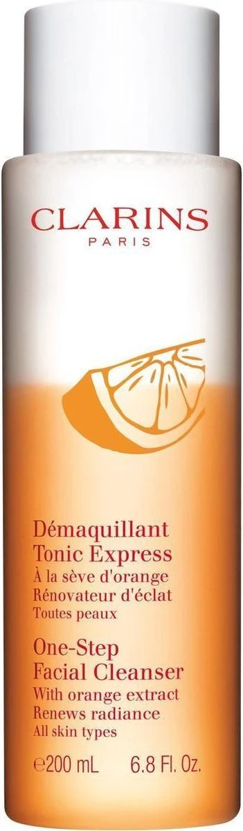 Clarins One-Step Facial Cleanser is een combinatie van een make-up remover en lotion en is geformuleerd met extracten van sinaasappel en moringazaad dat de effecten van vervuiling vermindert en een ontgiftende werking heeft. De formule heeft een dubbele werking. Enerzijds verfrist en kalmeert de lotion de huid en anderzijds verwijdert de make-up remover alle make-up, vuil, onzuiverheden en dode huidcellen. Voor een frisse teint en een stralende huid. Geschikt voor alle huidtypes.