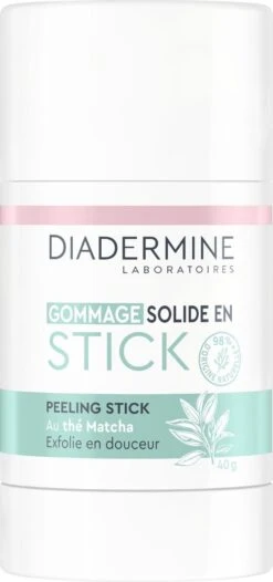 Diadermine Solid Beauty Stick Peeling, verrijkt met matchathee, verwijdert zacht dode huidcellen. De scrub zorgt zo voor een zachte, gladde huid. Dit innovatieve peelingsproduct is gemakkelijk te gebruiken als stick-formaat met geconcentreerde formules en in een duurzame verpakking. Een plezier om je huid te reinigen.