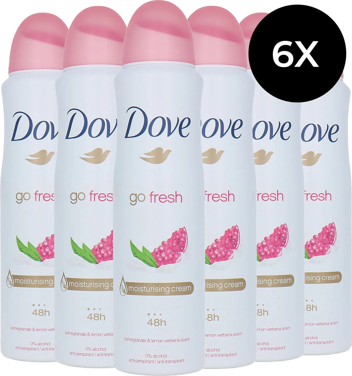 Dove Go Fresh Pomegranate anti-traspirant spray met de heerlijke frisse, pittige geur van granaatappel gecombineerd met een vleugje citroen verbena.