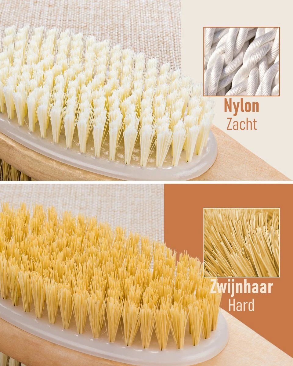 ✔ Dubbele borstelkop met zacht nylon en hardere zwijnharen