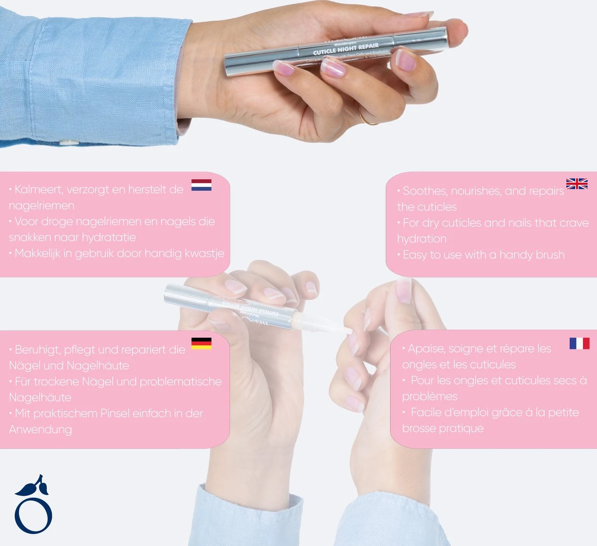Voor droge nagelriemen en nagels die snakken naar hydratatie.