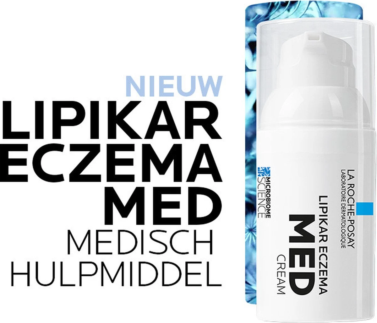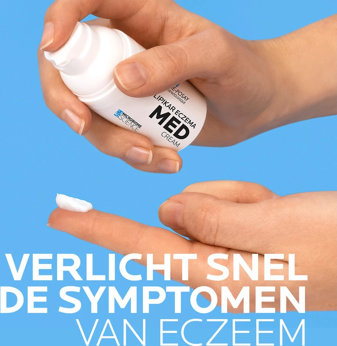Lipikar Eczema Med crème is een Medisch Hulpmiddel die snel de symptomen van eczeem verlicht. Symptomen van eczeem zoals ontstekingen, irritatie, jeuk, roodheid en een droge, ruwe en schilferige huid.