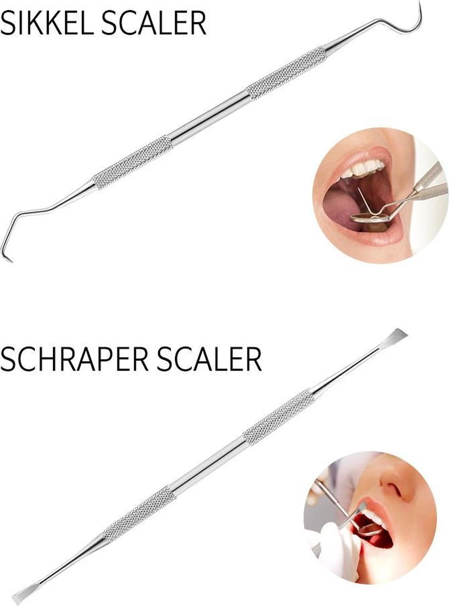 Tandsteen en tandplak verwijderen zijn de meest voorkomende ingrepen als het gaat om een tandartsbezoek. Dit kun je met poetsen en flossen helaas niet weghalen. In deze set zitten o.a. een tandsteen haakje en een tandsteen schraper. Met deze instrumenten haal je het gemakkelijk zelf weg. En dat scheelt je in de kosten bij je eerstvolgende tandartsbezoek.