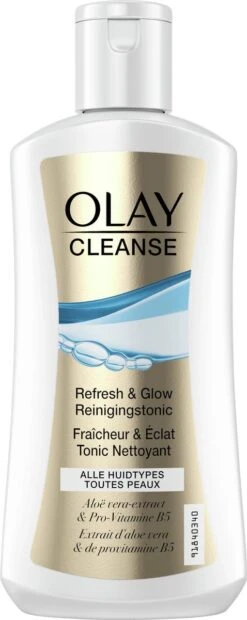 Olay Cleanse Refresh & Glow reinigingstonic reinigt, verzacht en bereidt de huid voor. Hij is ontworpen als een verfrissende, lichte formule verrijkt met aloë vera en provitamine B5. Olay Cleanse Refresh & Glow reinigingstonic is ontworpen om je huid:
