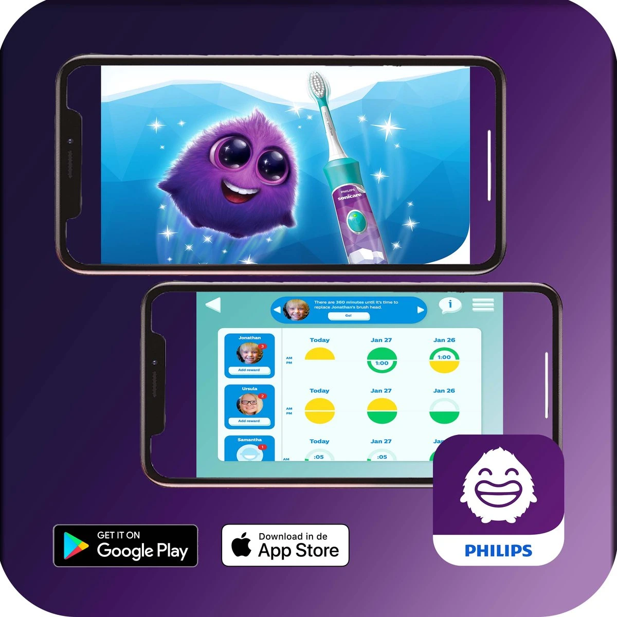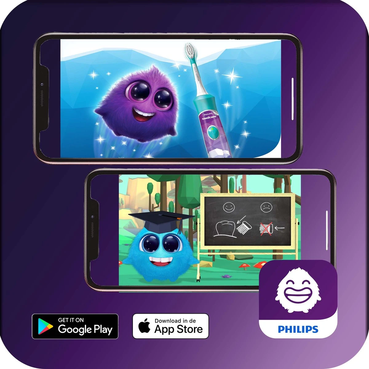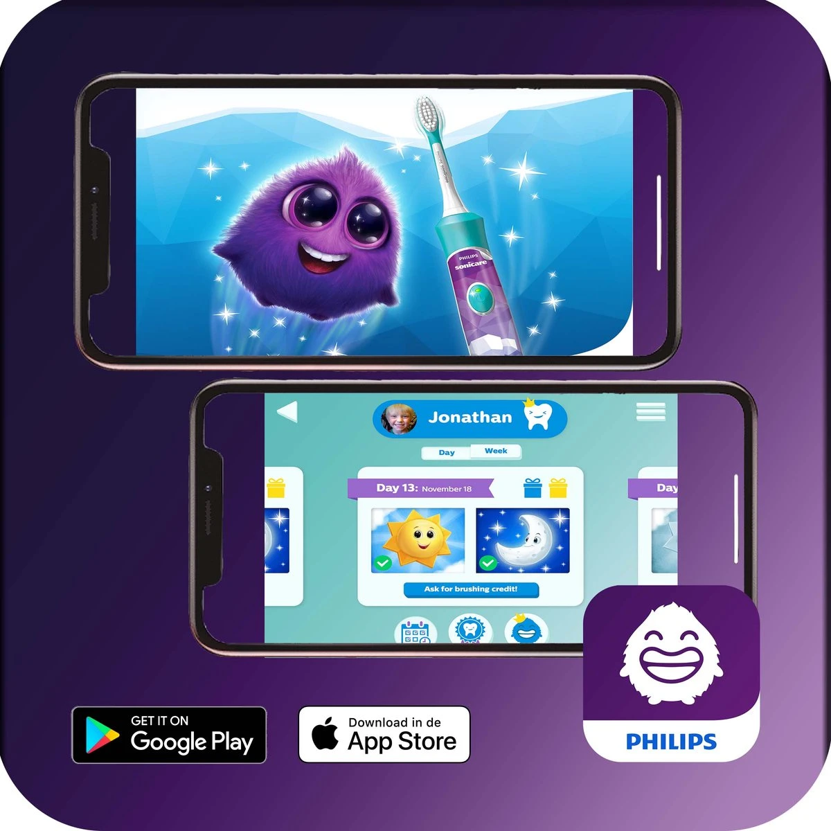 Met de Philips Sonicare For Kids-tandenborstel en app kunnen kinderen leren hoe ze goed zelfstandig kunnen poetsen. De app synchroniseert met de sonische tandenborstel van jouw kind via Bluetooth, laat de juiste poetstechieken zien en volgt de prestaties. Kinderen kunnen zien hoe goed ze poetsen en fantastische beloningen verdienen. Educatief en effectief; 98% van de ondervraagde ouders geeft aan dat het gemakkelijker is om de kinderen langer en beter te laten poetsen. Het is een leuke manier om kinderen goede
